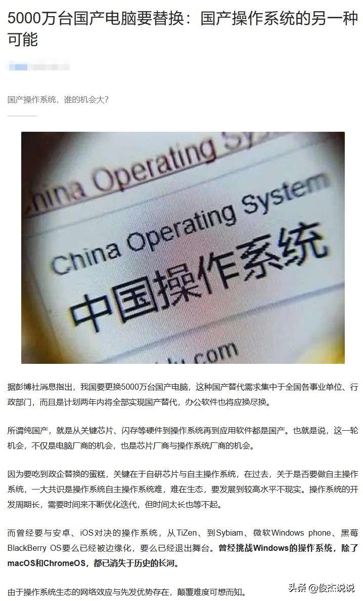 因为要吃到政企替换的蛋糕,关键在于自研芯片与自主操作系统,在过去,关于是否要做自主操作系统,一大共识是操作系统自主操作系统难,难在生态,要发展到较高水平不现实。操作系统的开发周期长,需要时间来不断优化迭代,但时间太长也等不起。