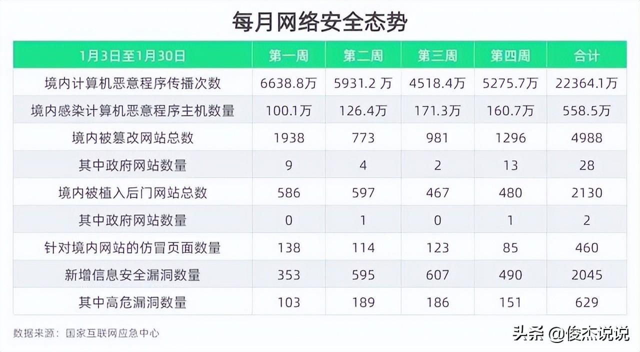 统计数据显示,2022年1月境内计算机恶意程序传播次数达到2.2亿次之多,2月较1月小幅上涨约1.43%。2月每周的境内计算机恶意传播次数呈上涨趋势,第4周最高,达到7211.9万。境内感染计算机恶意程序主机数量来看,1月数据为558.5万,2月达到603.6万,环比上涨8.08%。恶意程序会损坏文件、造成系统异常、窃取数据等,对计算机伤害很大,一定要高度重视。