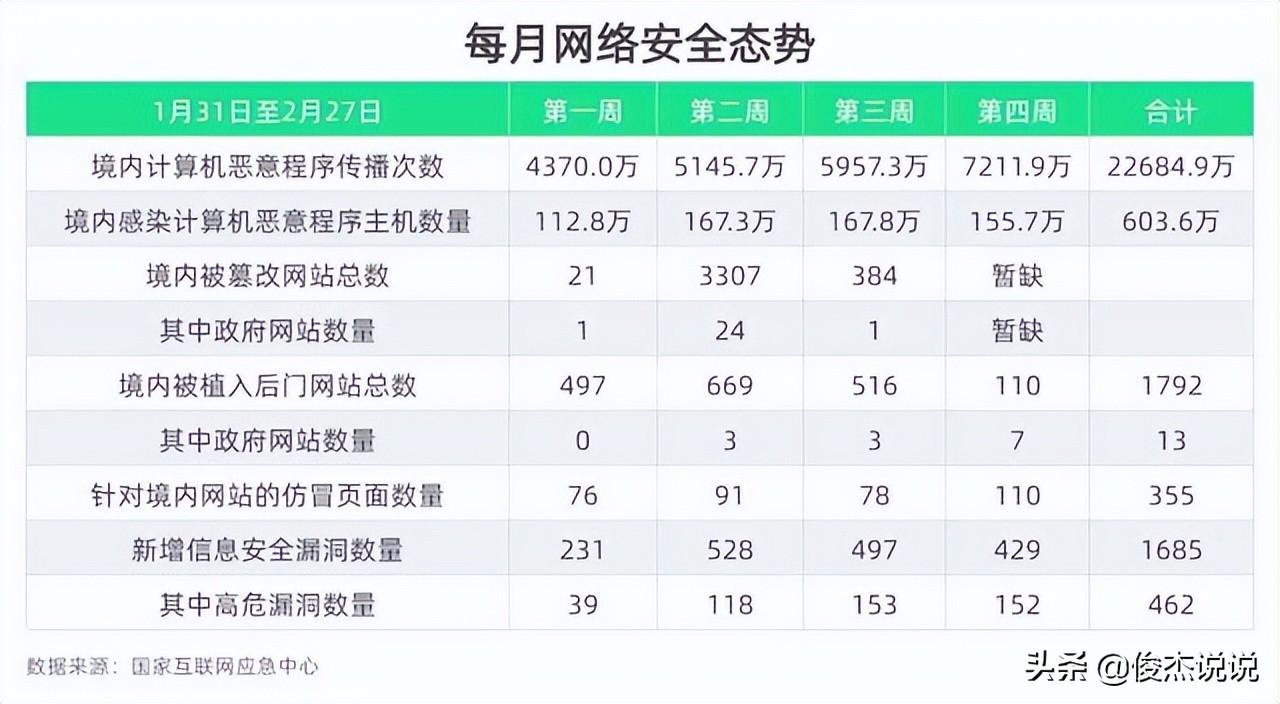 从仿冒网站、漏洞数量来看,2月较1月都有明显下降。其中,仿冒网站从1月的460个到2月的355个,仿冒网站数量下降也归功于全国反诈工作较为成功。而漏洞数量从1月的2045个到2月的1685个,环比下降21.36%,其中高危漏洞也有明显减少。针对安全漏洞问题,一定要在正规途径下载应用,并及时更新,不可心存侥幸。