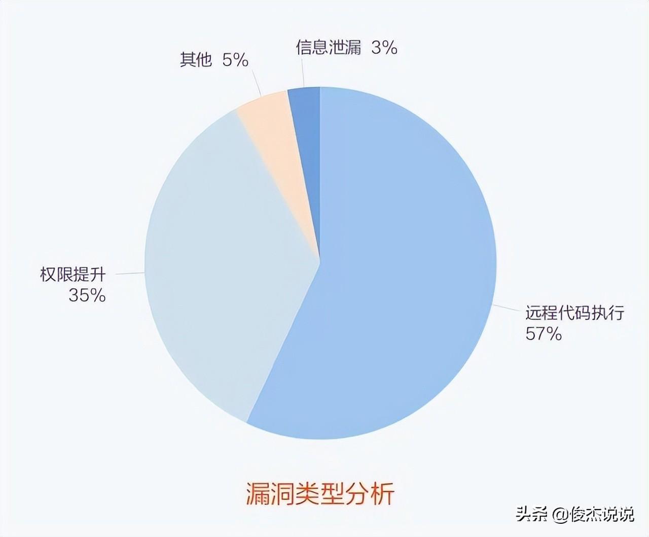 从在野0-day漏洞所属漏洞类型分布来看,2021年占比最多的是远程代码执行漏洞,其次是权限提升漏洞。