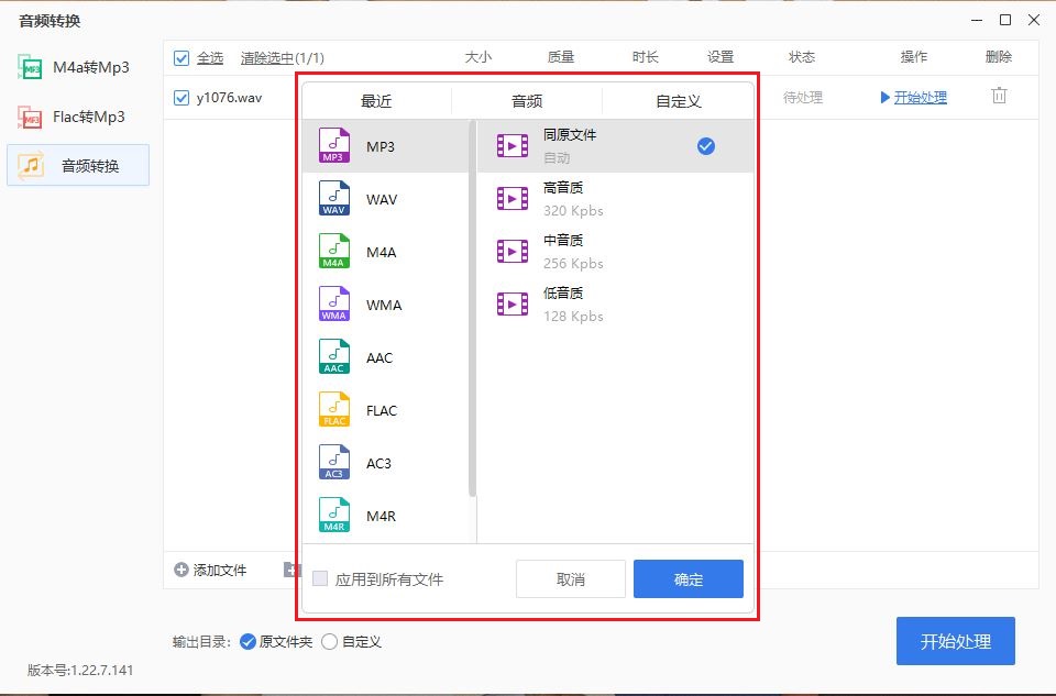首先,我们在手机上面录一段录音,保存直接发送到电脑的桌面,在电脑的默认浏览器中输入找到官网下载最新的安装包安装成功后,双击快捷方式直接打开,点击头像直接登录,首页的左侧功能栏中选择【音频处理】,然后选择【M4a转MP3】,如果是其它格式的录音文件,也可以选择【音频转换】这个功能,然后一键【添加文件】,支持批量录音文件的处理,同时支持自定义的编辑,如果用户处理批量的录音文件麻烦的话,可以新建一个文件夹把批量的录音文件放进去然后直接拖拽进来,选择【音频转换】功能需要将【转换设置】定为MP3格式,最后,选择【输出目录】之后,点击【开始处理】就可以将录音文件转换成功了,三步走非常简单便捷!