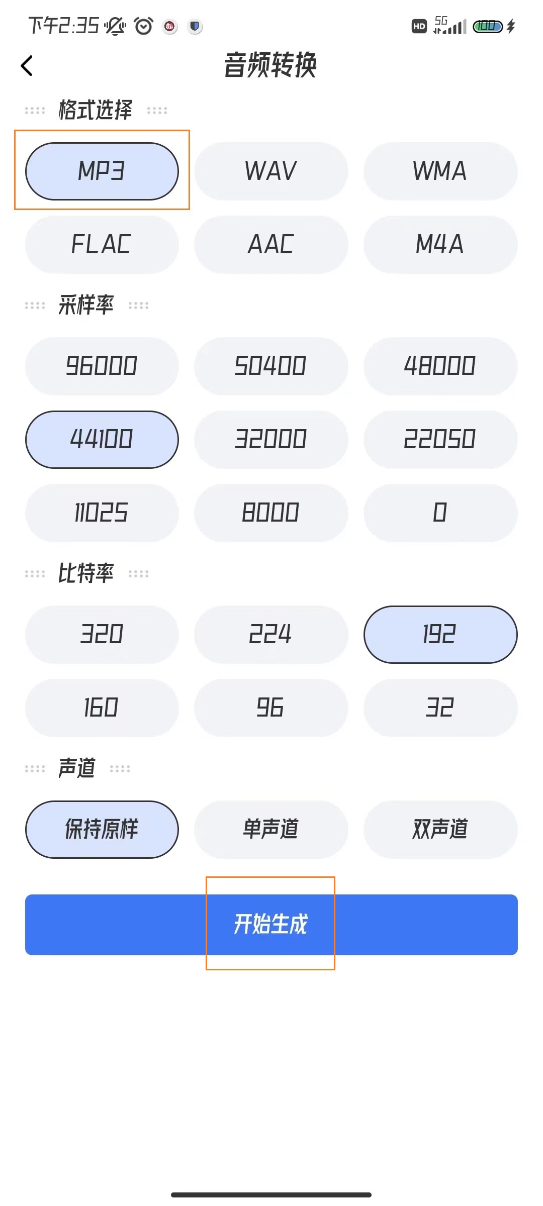 首先,在手机应用商店下载《录音转文字转换宝》这个软件,如果应用商店没有收录这个软件的话,可以去浏览器搜索在官网下载,下载好之后直接安装,然后点击事先准备好的录音用这个软件应用打开,在首页中我们选择【音频格式转换】,【音频转换】的设置中将格式选择为【MP3】,还可以设置下音频的采样率、比特率以及声道,最后点击【开始生成】,这样一来我们就可以将我们的录音文件转换好了。