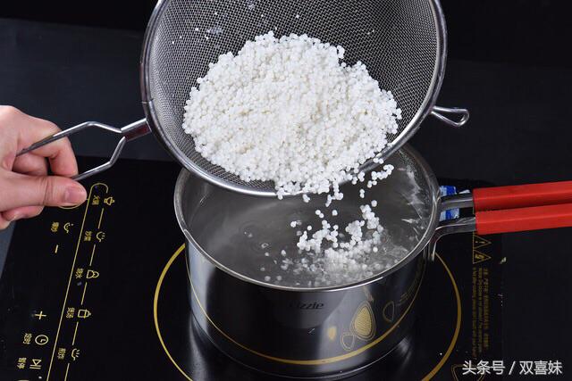 这一步跟之前一样煮好西米过凉水冲洗后,放入碗里,可以一次多煮点,随吃随取