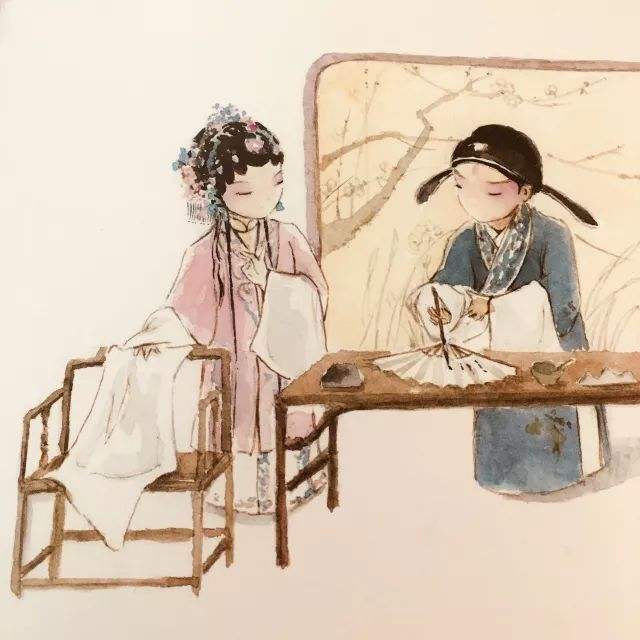 友人杨龙友见到此情此景,深为感动,他将沾满血迹的扇子拾了起来,用毛笔将上面的血迹勾勒成了朵朵桃花,一把诗扇也就变成了“桃花扇“了,它是用李香君的血和泪浇注成的。