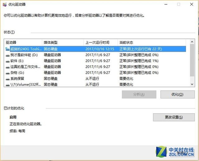 磁盘碎片整理可以右键C盘-属性-工具-对驱动器进行优化和碎片整理-优化,进入界面中设置其自动优化整理的时间。