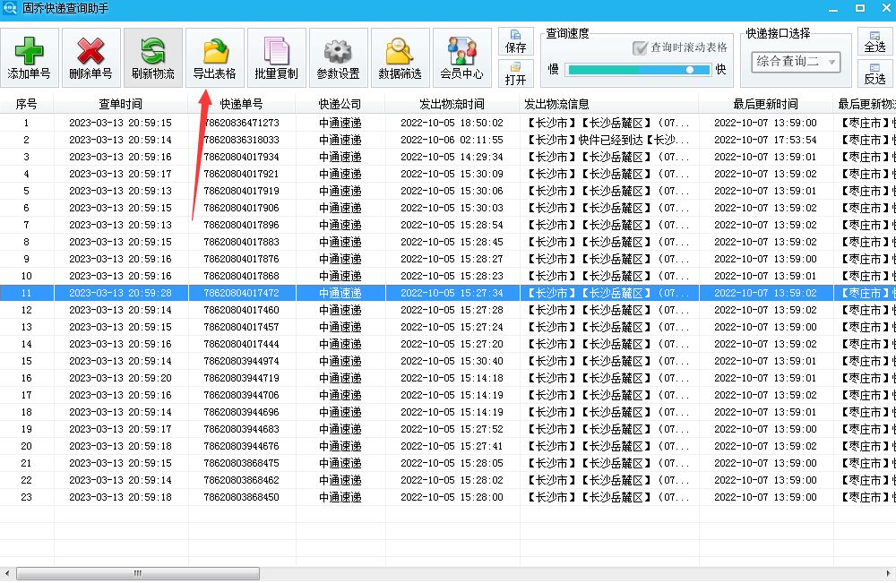可以看到,很快这些快递单号的物流信息就查询完毕。如果有需要的小伙伴想要把表格导入到本地电脑上,只需点击“导出表格”即可。