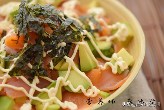 今天给大家推荐的这碗米饭,在腌制上绝对不输,而且营养也是一绝,在食材的选择上除了经典的海苔,还有烟熏三文鱼和牛油果,再搭配上香浓的沙拉酱,一口下去味道非常丰富。