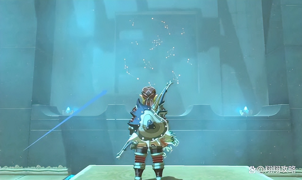 进去后回头可以看到一个机关门里面有一个隐藏的宝箱,我们需要按宝箱上墙壁的星座群重新放置小球。