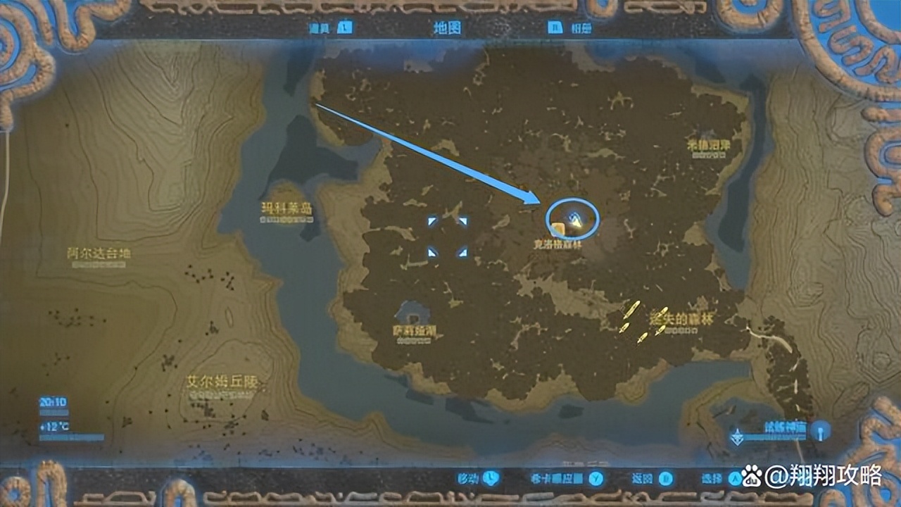神庙位置如图,就在克洛格森林德库树的右侧。