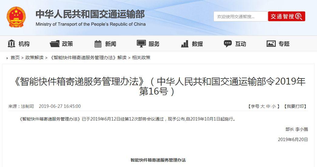 日前,交通运输部公布了《智能快件箱寄递服务管理办法》(以下简称《办法》)。《办法》共35条,自2019年10月1日起施行。《办法》规定,未经收件人同意,快递员将不得随意把包裹放进智能快件箱!看看杭州有哪些动作?