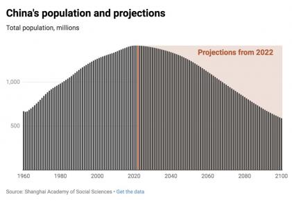 而根据上海社科院的预测,中国人口将从2022年左右开始进入负增长。