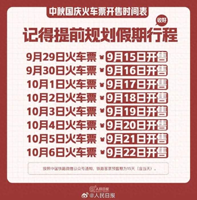 按照中国铁路微信公众号通知,铁路客票预售期为15天(含当天)。