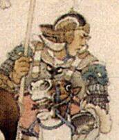 04宋江、吴用下方戴幞头骑黑马、手腕吊钢鞭的是病尉迟孙立(确认无疑)
