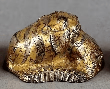 长4.8厘米高2.3厘米。于1979年在陕西凤翔县虢镇出土,此地区原是先秦所辖区域。金虎上没有铭文,另外从造型特征看,属春秋战国时期(公元前475年~公元前221年),因此推断此符为早期形状。