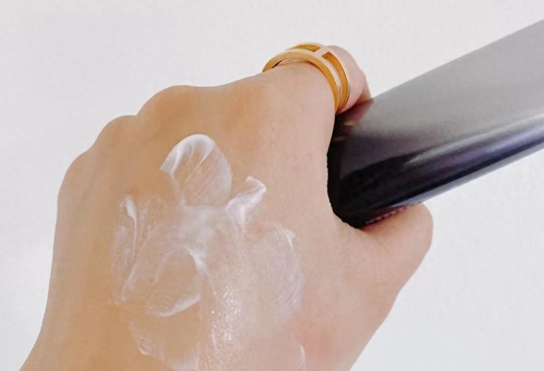 区别于一般厚重的防晒使用感,这支防晒霜是清透的水感质地,接触皮肤后会化成水珠。上脸涂抹很像是给皮肤罩上了一层薄纱,有透气感不会觉得闷黏。