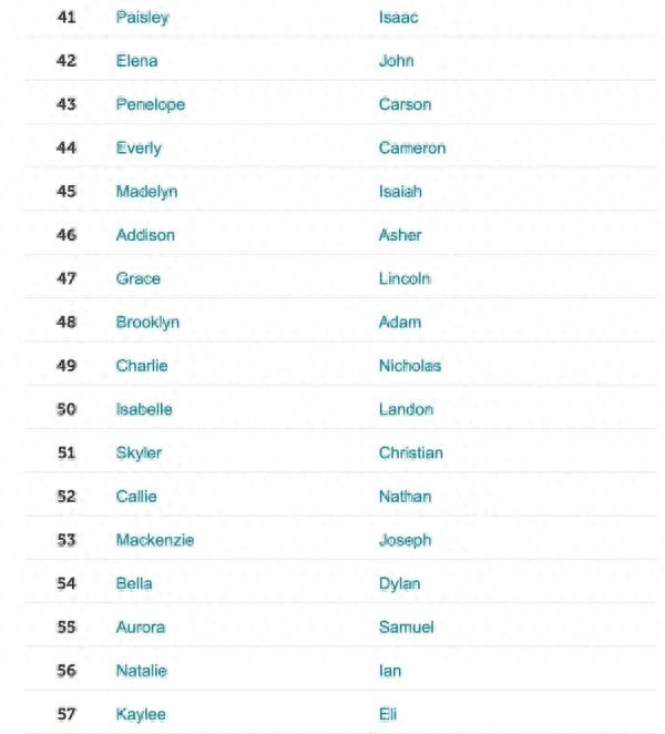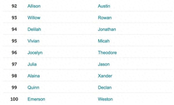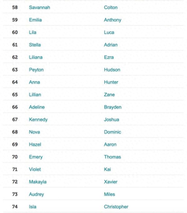 而年轻一代更喜欢像“Emily,Emma,Olivia”这样的名字。