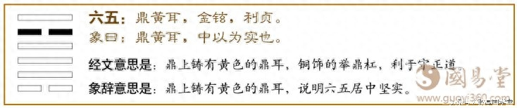 象辞意思是:鼎上铸有黄色的鼎耳,说明六五居中坚实。
