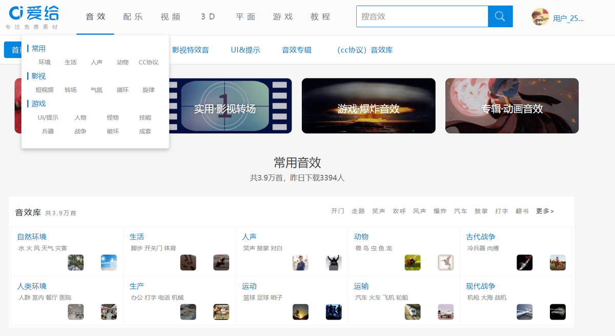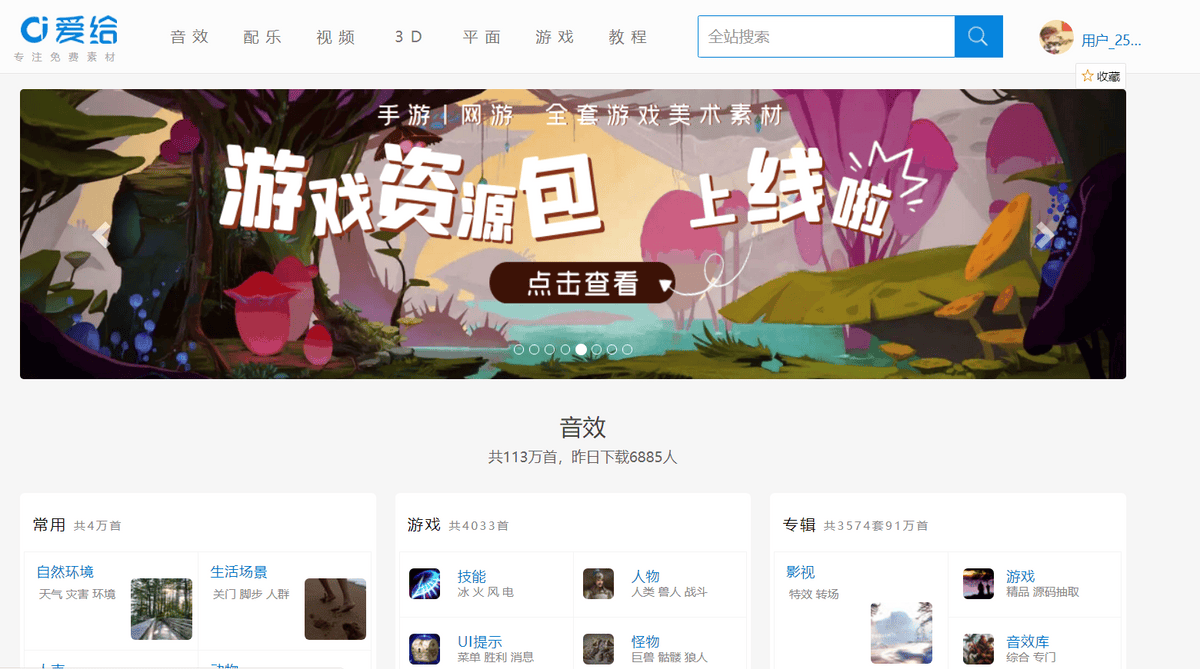 专注于免费素材的网站,里面的种类非常之多。有音效配乐视频,3D平面游戏教程等,音效更是达到了100多万,首需要音效和配乐的素材可以来这个网站找。
