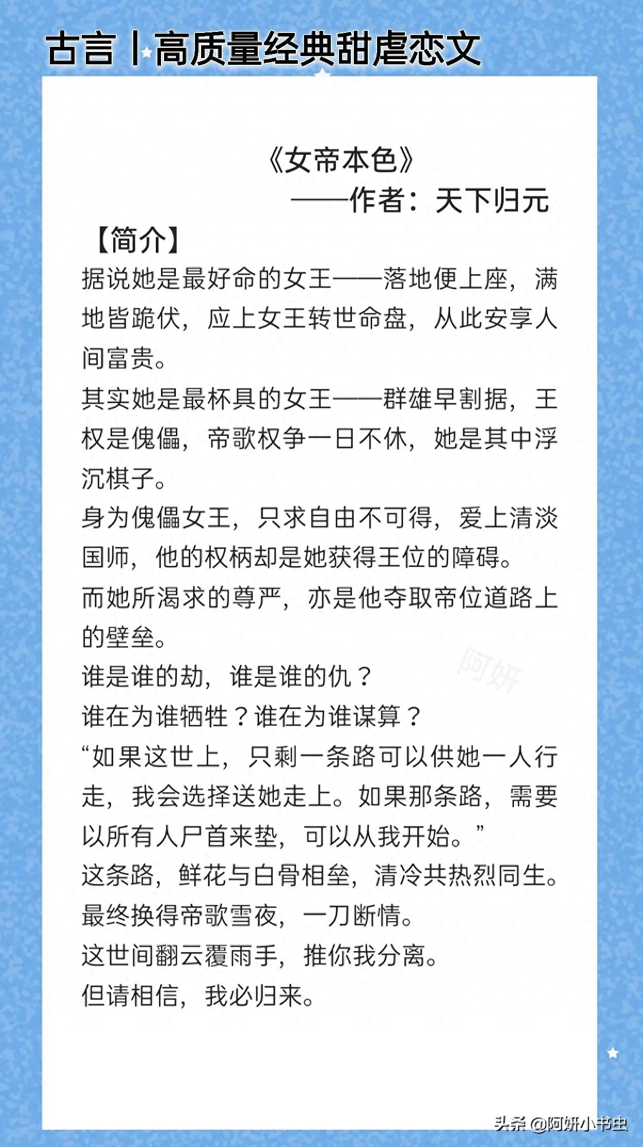 强推双强!精品甜虐恋古言:《天下第一嫁》《女帝本色》本本经典