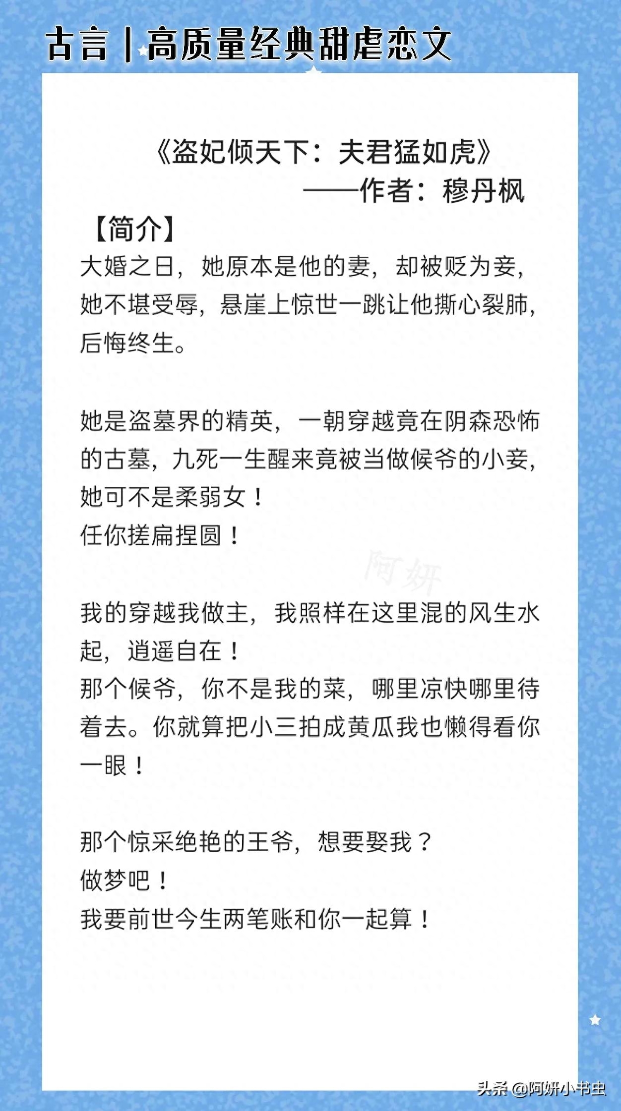 嗨大家好:我是阿妍,你们的小可爱带着热乎乎的小说文案来了。