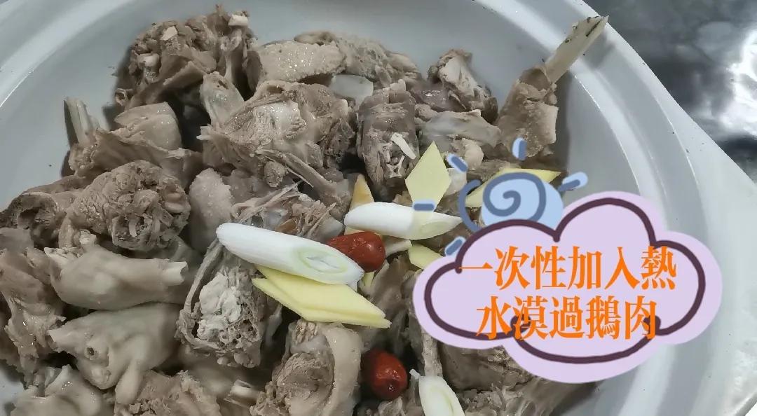 一次性加入热水漠过鹅肉,一次性把水加足,在炖的中途不要添加水,热水,砂锅,是成就老鹅汤的关键