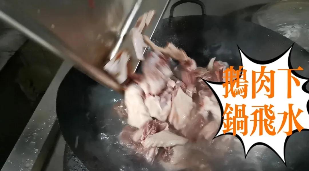 鹅剁大块,冷水下锅飞水,一定要冷水 (多年烧鹅经验)