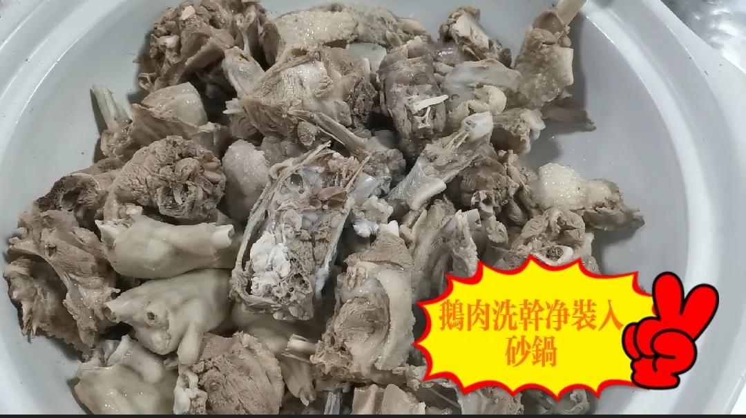 飞完水的鹅,洗干净装入砂锅里面,这里要注意一下,要用砂锅,不要问我为什么
