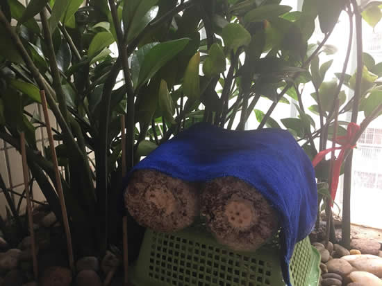 按说明,把菌包的口子剪开,露出侧面,找个阴凉的地方放置好,上面铺块毛巾,毛巾每天浇些水保持能滴水的状态,露出的侧面每天都要用小喷壶喷水以保持湿润。