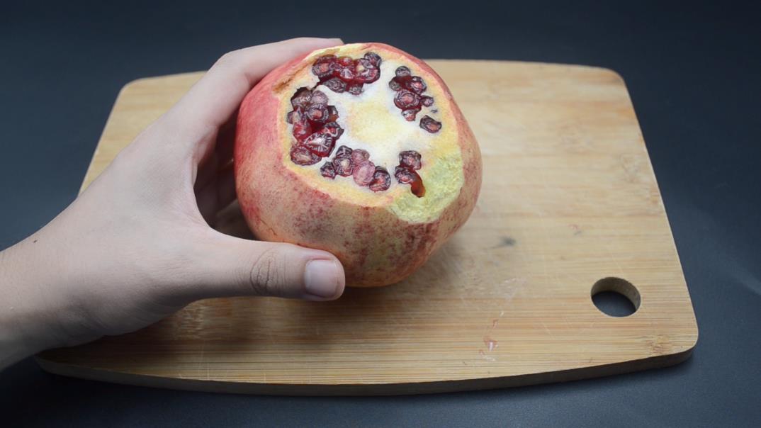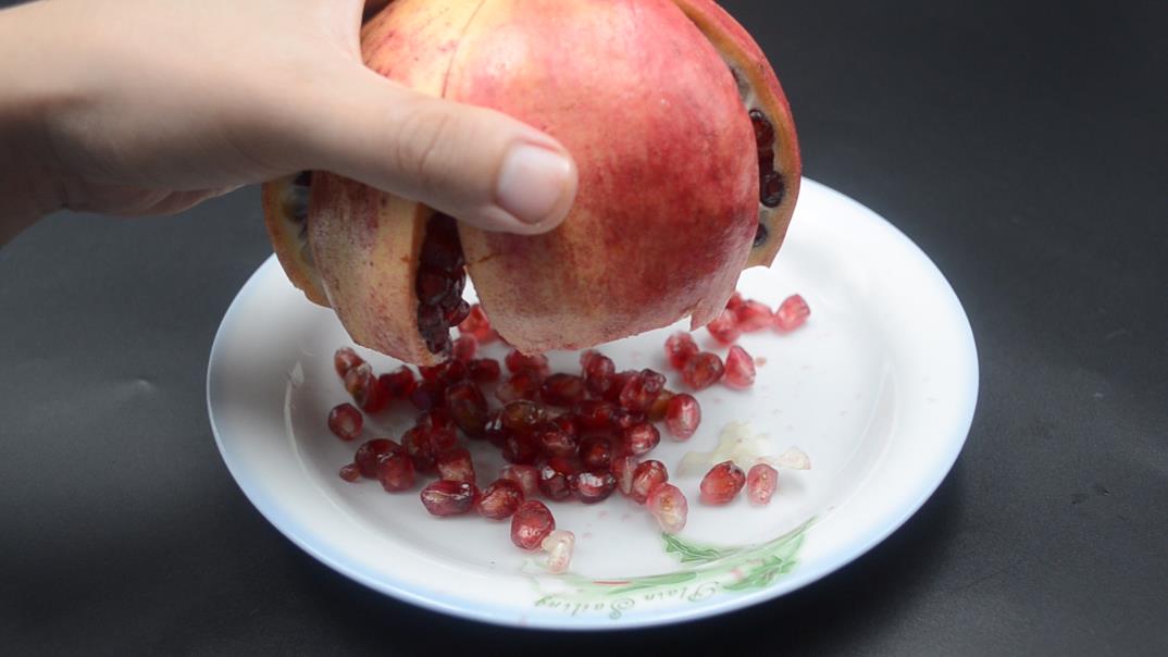 怎样剥石榴 只需一根勺子,果肉自动脱落,不脏手不流汁
