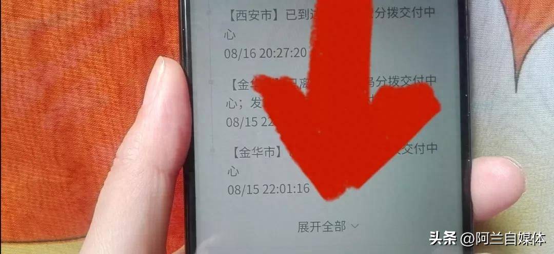那么我们可以把它打开,在这里我们就可以看到我们的快递具体是走到哪里,更好的是再也不用下载什么应用或者到别的地方去查询了,在微信上只需一秒钟就立刻查询出来,在这里就可以看到我们的快递行踪了。注意看下方还有一个“展开全部”。