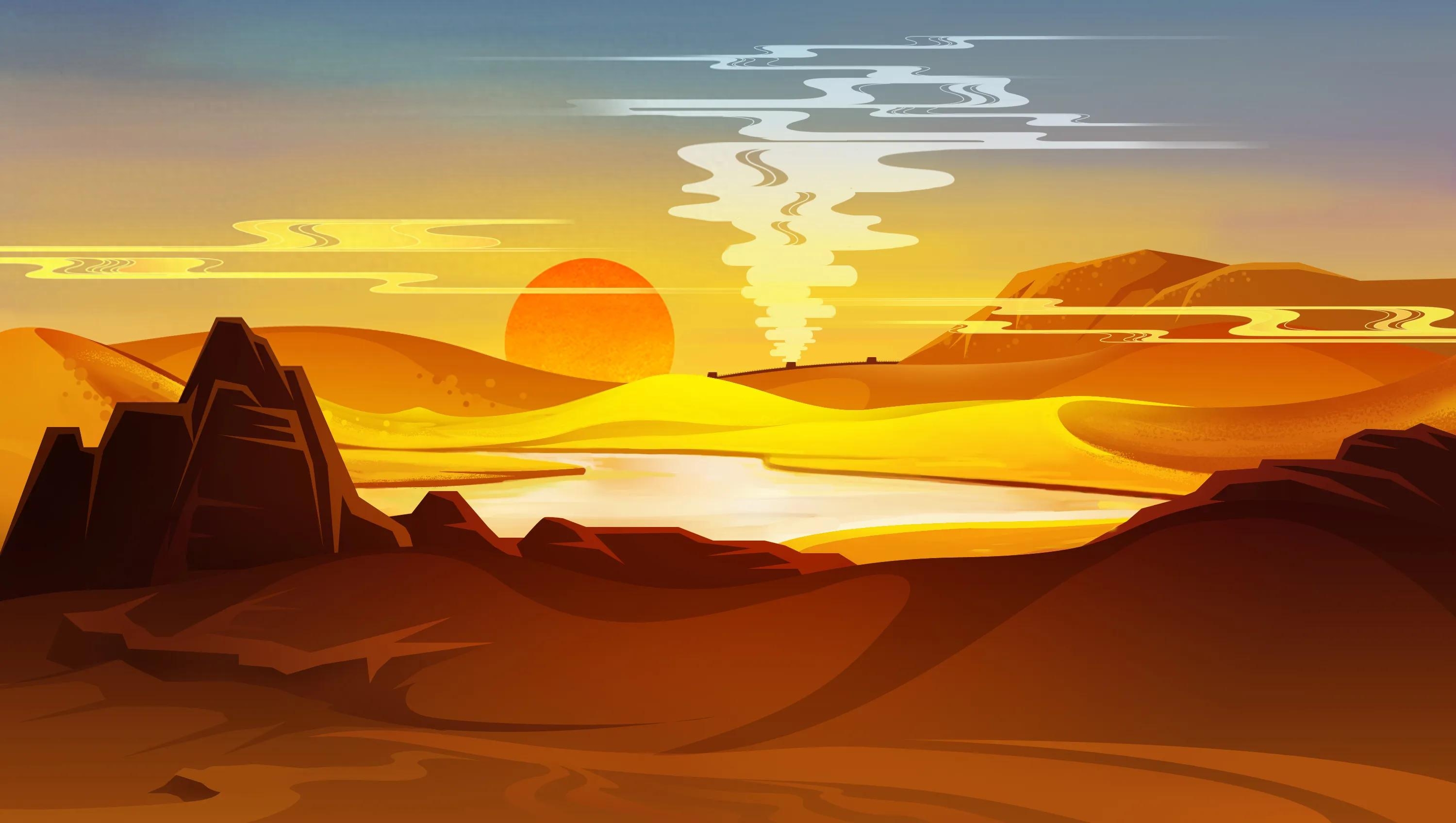 诗人的“单车”继续前进,坐在车中诗人感到它象飞蓬(蓬草)一样随风飘摇,行踪难定地飘出了汉塞。车外是一派春末的景色,抬头望去,大雁排着人字飞入了吐蕃国的天空。走着走着,面前突然出现了令人惊奇,令人赞叹的景观:广袤的沙漠上燧烟袅袅地、笔直地升上了天空,又圆又大的夕阳正慢慢地向黄河落去。“大漠”与“孤烟”,“长河”与“落日”,这是多么鲜明而壮观的对照。它构成一个寥阔、旷远、静穆、雄浑的意境。这正是塞上特有的自然风光。“大漠孤烟直,长河落日圆”,给人以无穷的美感享受,成为令人千古称赞的佳句。有了这两句则整首诗一下子跳起来,充满了迷人的艺术魅力。