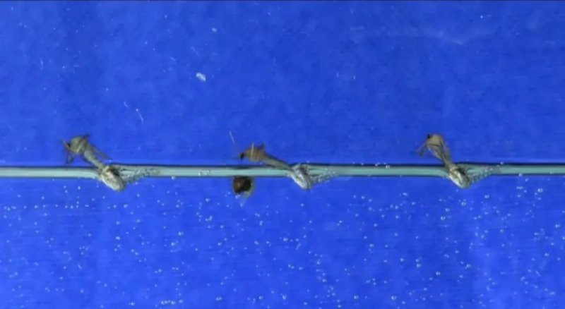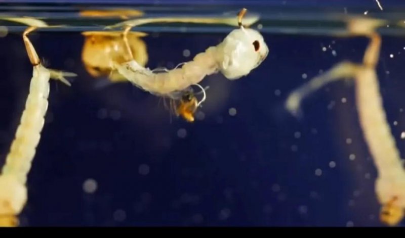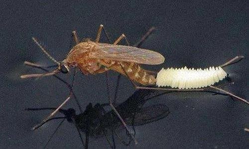 蚊子刚产下的卵为白色,之后卵的顶部会出现一个黑点,然后黑点慢慢扩大,直到整颗卵全部变成黑色,才会孵化出幼虫。这个过程需要24小时左右。