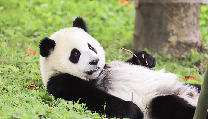 大熊猫大多数的时间都是在手脚并用地收集、准备食物和进食。它们并不在乎它们在什么地方——坐着、平躺、侧倚——它们只是不停的剥竹竿,吃竹叶。大熊猫食物的99%都是竹子,有时候也可能是一些野花,藤蔓,野草,蜂蜜,甚至是一些肉。