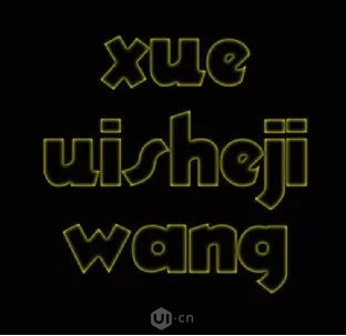 创建一个新的1280x 720像素的文件,背景填充黑色。使用字体创建xueuishejiwang,的大小200像素,和颜色随意设置。如果你想安排的词分开,建立在一个单独的层,然后他们把他们合并成组,命名“字体”。
