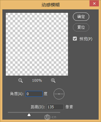 选择纵向模糊层,然后去滤镜>模糊>动感模糊,改变角90,和距离135。
