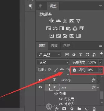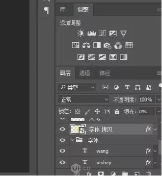 现在,我们要复制XUE的图层样式,然后对另外两个字体图层进行选择粘贴图层样式。