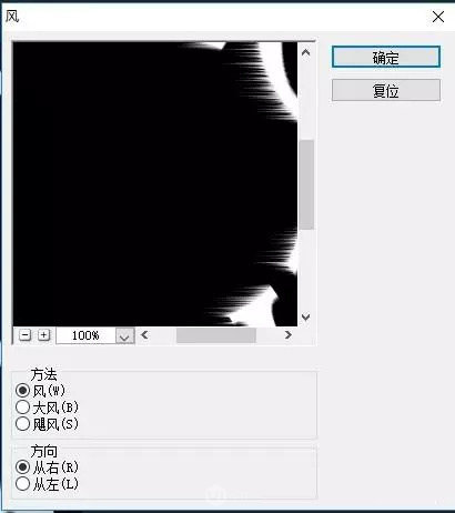5. 在菜单中执行“滤镜/风格化/风”命令,打开“风”对话框,