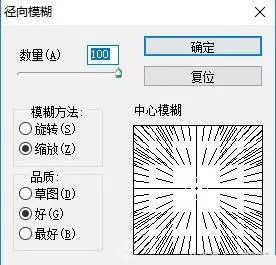 8. 然后在菜单中执行“滤镜/模糊/径向模糊”命令,打开“径向模糊”对话框,其中的参数值设置如图所示。