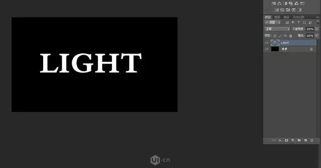 新建一个“宽度”为700像素、“高度”为400像素、分辨率为72的黑色文档,输入自己想要的文字,颜色为白色,如图所示。