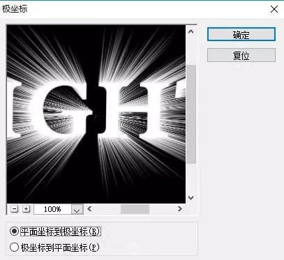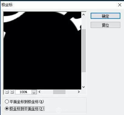 3. 在菜单中执行“滤镜/扭曲/极坐标”滤镜,打开“极坐标”对话框,勾选“极坐标到平面坐标”,如图所示。