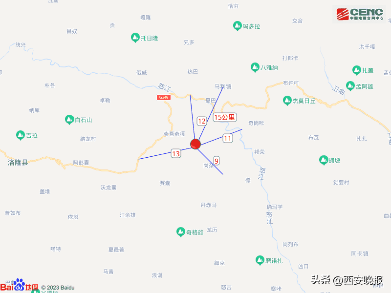本次地震周边5公里内的村庄有岗次喀、格过弄村、瓦拥,20公里内的乡镇有玉西乡、康沙镇、马利镇、白达乡、马利镇。