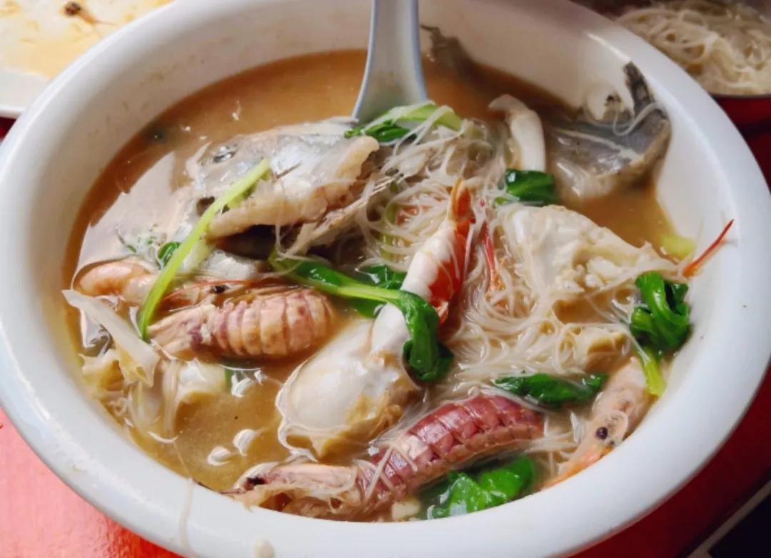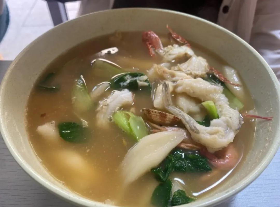 两个岛上最常见到的简餐是“海鲜汤面/粉”“海鲜炒面/粉”“海鲜炒饭”“海鲜疙瘩汤”,价格在25-35之间,海鲜配料是虾、皮皮虾、蛤蜊、扇贝、蛏子、青口贝、鱼肉中的某几种,一般是随机出现3-4样。