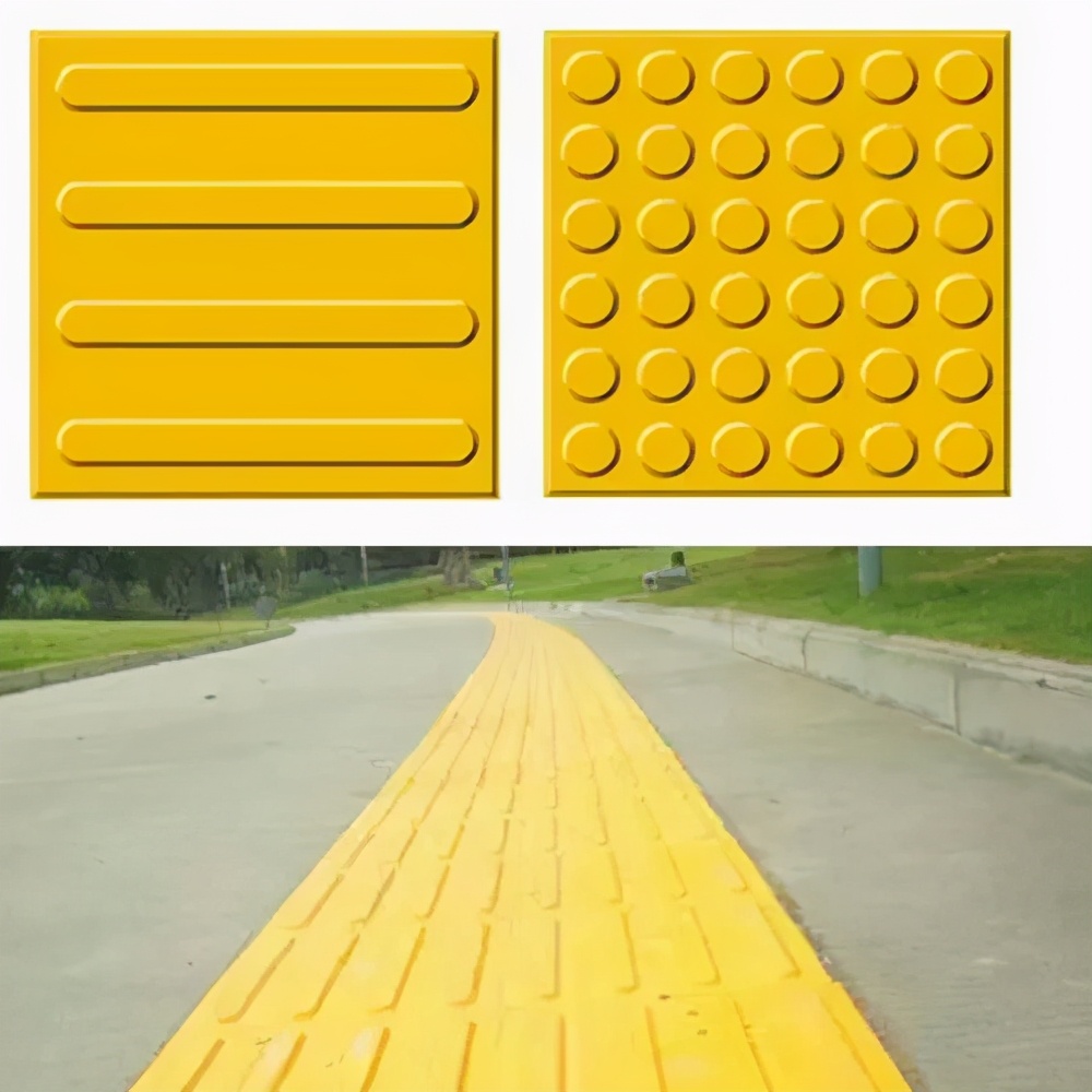 盲道一般由两类砖铺就,一类是条形引导砖,引导盲人放心前行,称为行进盲道;一类是带有圆点的提示砖,提示盲人前面有障碍,该转弯了,称为提示盲道。