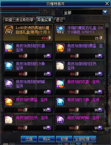 毕业后的玩家也得去刷这个副本,因为这个副本可以兑换武器12属强宝珠,目前拍卖商只有12冰属性强化和12火属性强化附魔宝珠,而本次帝国竞技场将开放12光属性强化和12暗属性强化,这对于走光强和暗强的玩家可以说是一次非常大的更新。