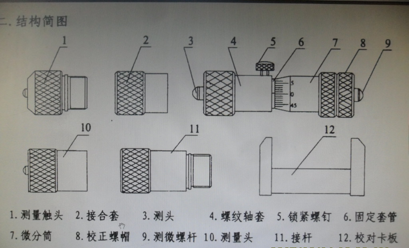 (2)由于内径千分尺没有控制测量力的机构,故在测量时,要凭手感控制测量力,以两测头与被测表面刚好接触为准。