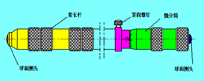 (3)当被测尺寸较大,要选用多节接长杆,接长杆的数目越少越好,以减少积累误差。