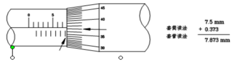 内径千分尺被侧尺寸=连接杆尺寸+测量值(5+0.465=5.465mm)