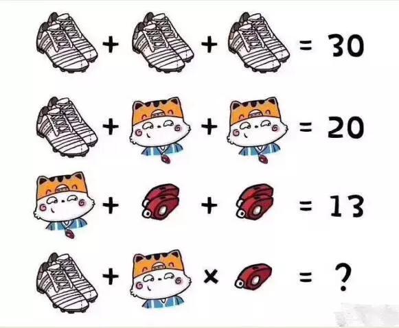 观察这道题,其实最爱出错的地方有两个,第一个是忽略了猫咪脖子上的挂坠,另一个便是把第四行的乘法看成是加法,如果这两个地方都注意到了那么再做错了只能说明。。。。(此处省略几个字!)