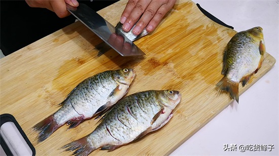 首先:把鲫鱼去掉鱼鳞、内脏和鱼鳃,内脏的黑膜不处理干净就会有苦味,而鱼鳃是鱼的过滤器,里面有很多的杂质和鱼腥味,所以这两处必须处理干净。
