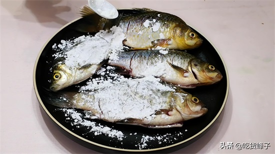 第四:腌制好的鱼表面铺点干淀粉,目的是煎制时不粘锅。